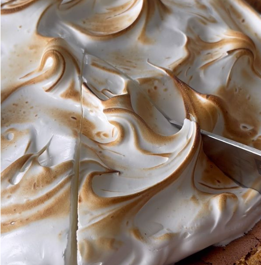 Use a kitchen blow torch to toast the exterior of the meringue. If you don’t have a blow torch, you can also place it in an oven set to broil for 1 minute, but be sure to keep an eye on it because it will toast very quickly!